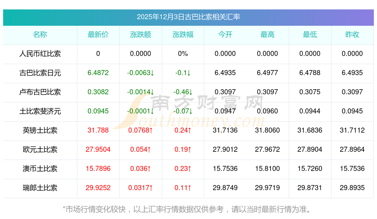 南方財富網(wǎng)為您提供古巴比索對日元匯率最新價格詳情。