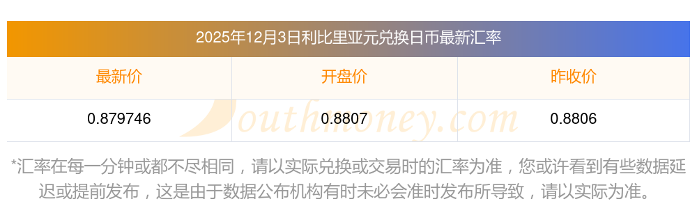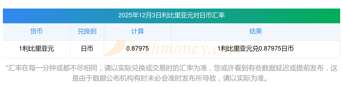 利比里亞元匯率行情:今日利比里亞元對(duì)日元匯率多少?2025/12/3