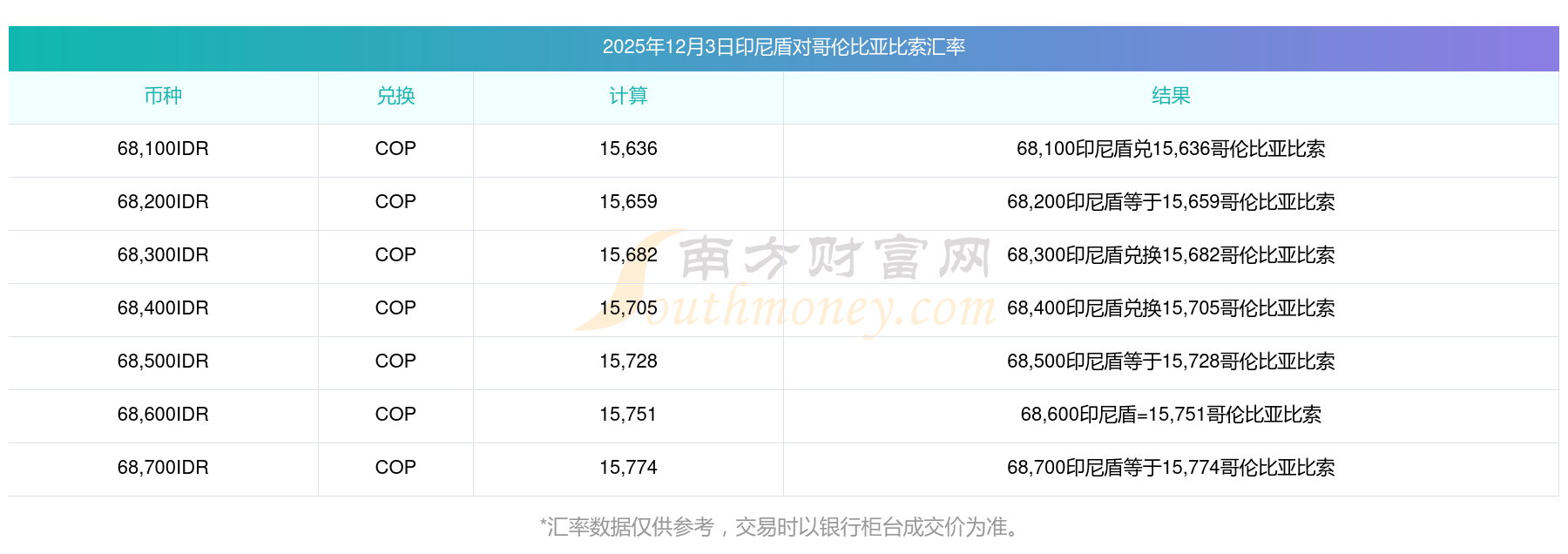 今日匯率印尼盾 印尼盾兌哥倫比亞比索今天匯率是多少?12月3日