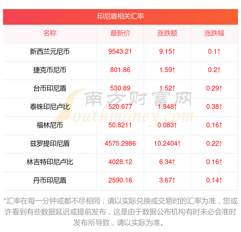 匯率在每一分鐘或都不盡相同,請以實際兌換或交易時的匯率為準(zhǔn),您或許看到有些數(shù)據(jù)延遲或提前發(fā)布,這是由于數(shù)據(jù)公布機構(gòu)有時未必會準(zhǔn)時發(fā)布所導(dǎo)致,請以實際為準(zhǔn)。