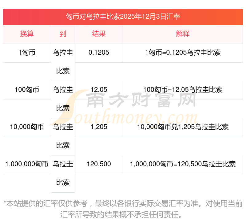 今天匈幣轉(zhuǎn)換烏拉圭比索匯率多少_匯率走勢(shì) 2025-12-03