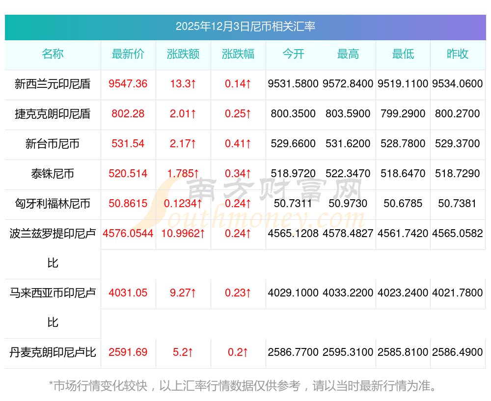 根據(jù)2025年12月3日匯率,尼幣兌換菲幣匯率最新0.003544,今開0.0035,昨收0.0035,最高0.0035,最低0.0035。