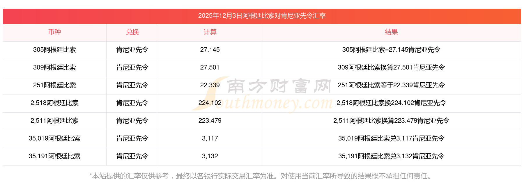 最新70阿根廷比索兌換肯尼亞先令折算匯率表_今天外匯查詢2025年12月3日