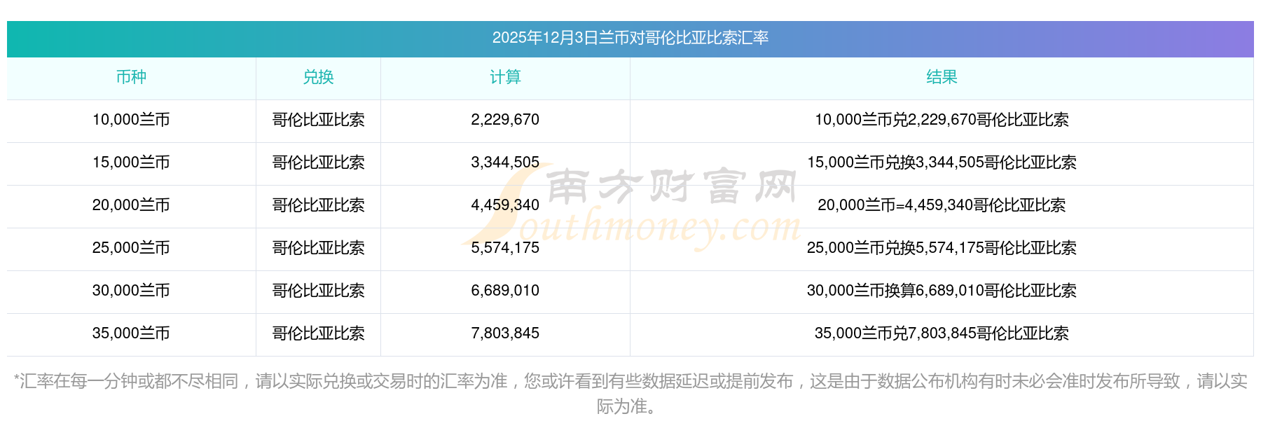 南方財(cái)富網(wǎng)為您提供蘭幣對哥倫比亞比索匯率最新價(jià)格詳情。