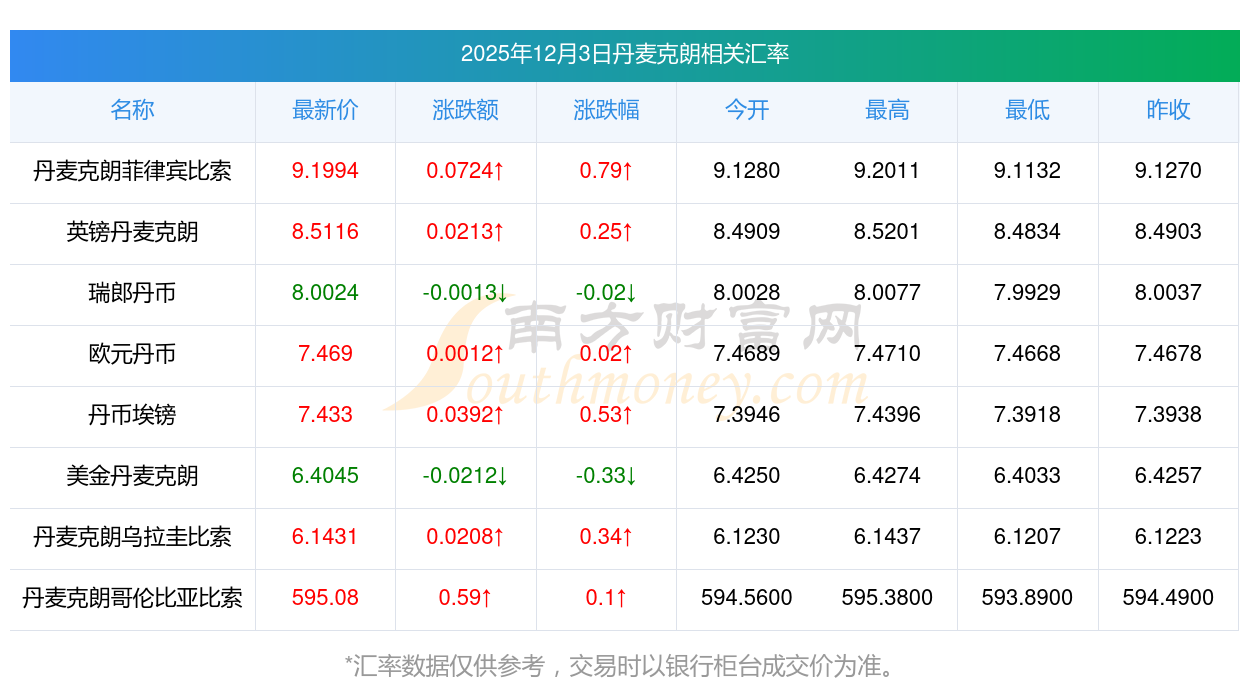 2025年12月3日丹麥克朗相關(guān)匯率查詢