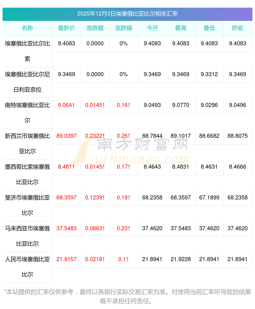 2025年12月3日埃塞俄比亞比爾相關匯率查詢