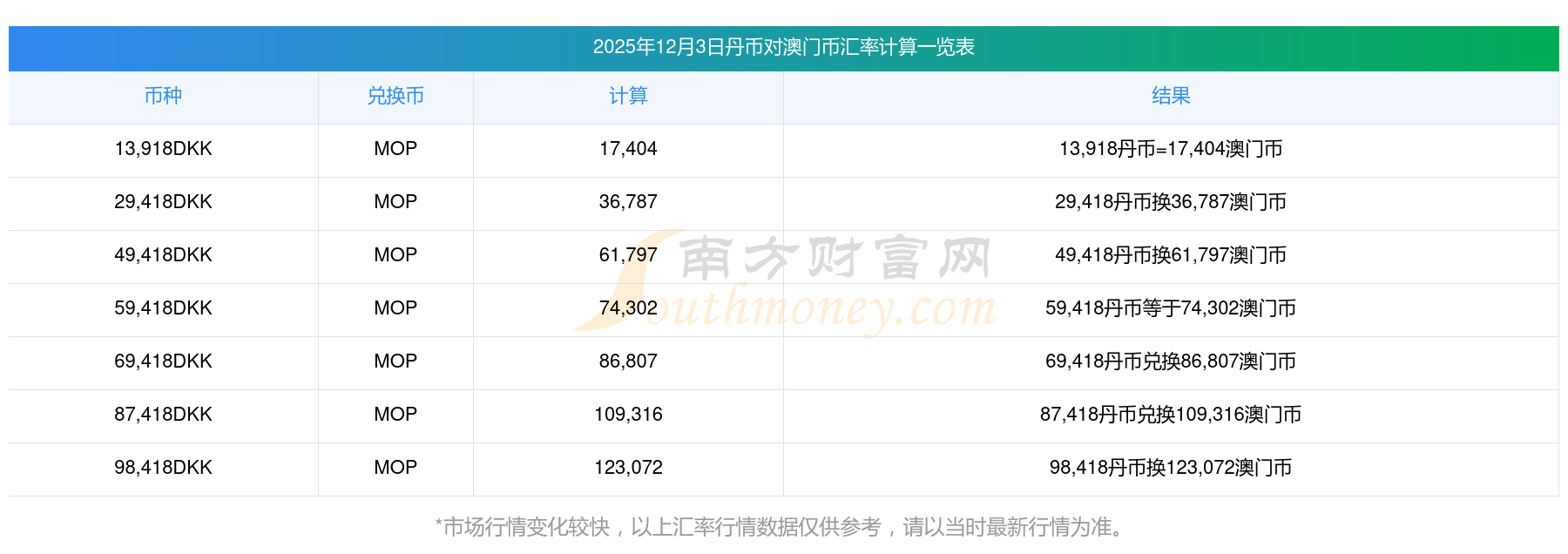 南方財(cái)富網(wǎng)為您提供丹幣對(duì)澳門幣匯率最新價(jià)格詳情。