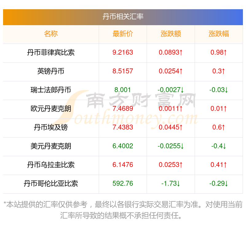 各大貨幣匯率: 丹幣兌換澳門幣匯率查詢12-03