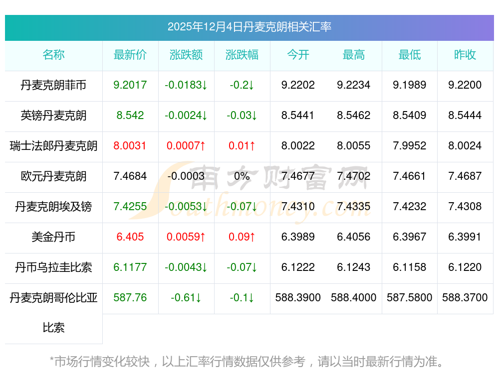 2025年12月4日丹麥克朗相關(guān)匯率查詢