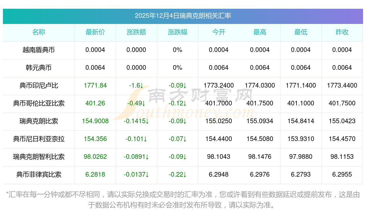 根據(jù)2025年12月4日匯率計算,SEK兌換MAD匯率最新價0.983943,今開價0.9843,昨收價0.9844,最高價0.9847,最低價0.9828。