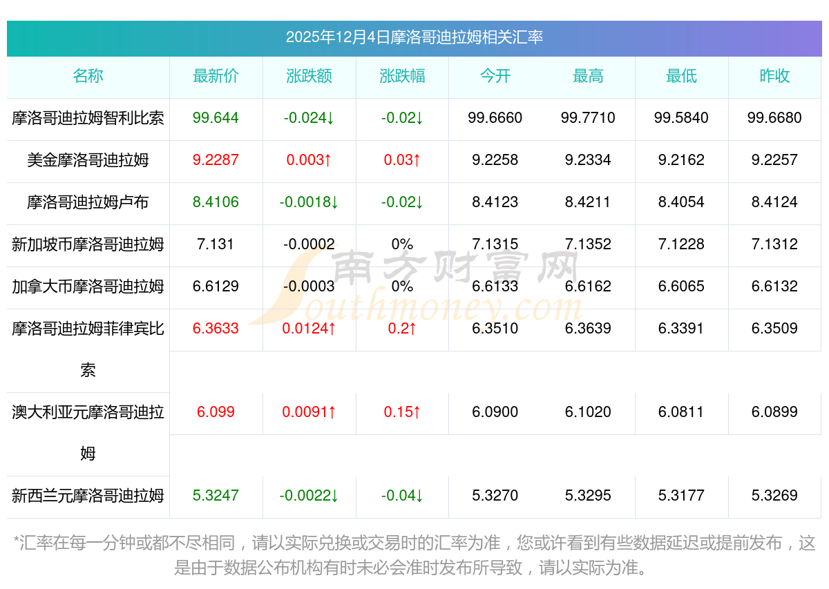 今日匯率兌換_最新摩洛哥迪拉姆對(duì)盧布匯率表(12-4)