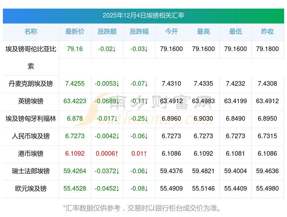 2025年12月4日埃鎊相關(guān)匯率查詢