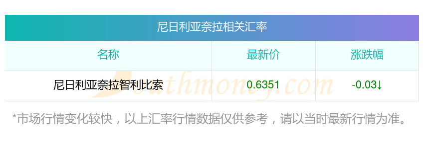 根據(jù)2025年12月4日匯率,尼日利亞奈拉兌換智利比索匯率最新0.635100,今開(kāi)0.6353,昨收0.6353,最高0.6369,最低0.6351。