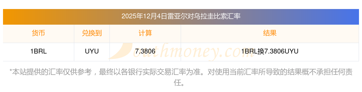 雷亞爾和烏拉圭比索的匯率(2025年12月4日)