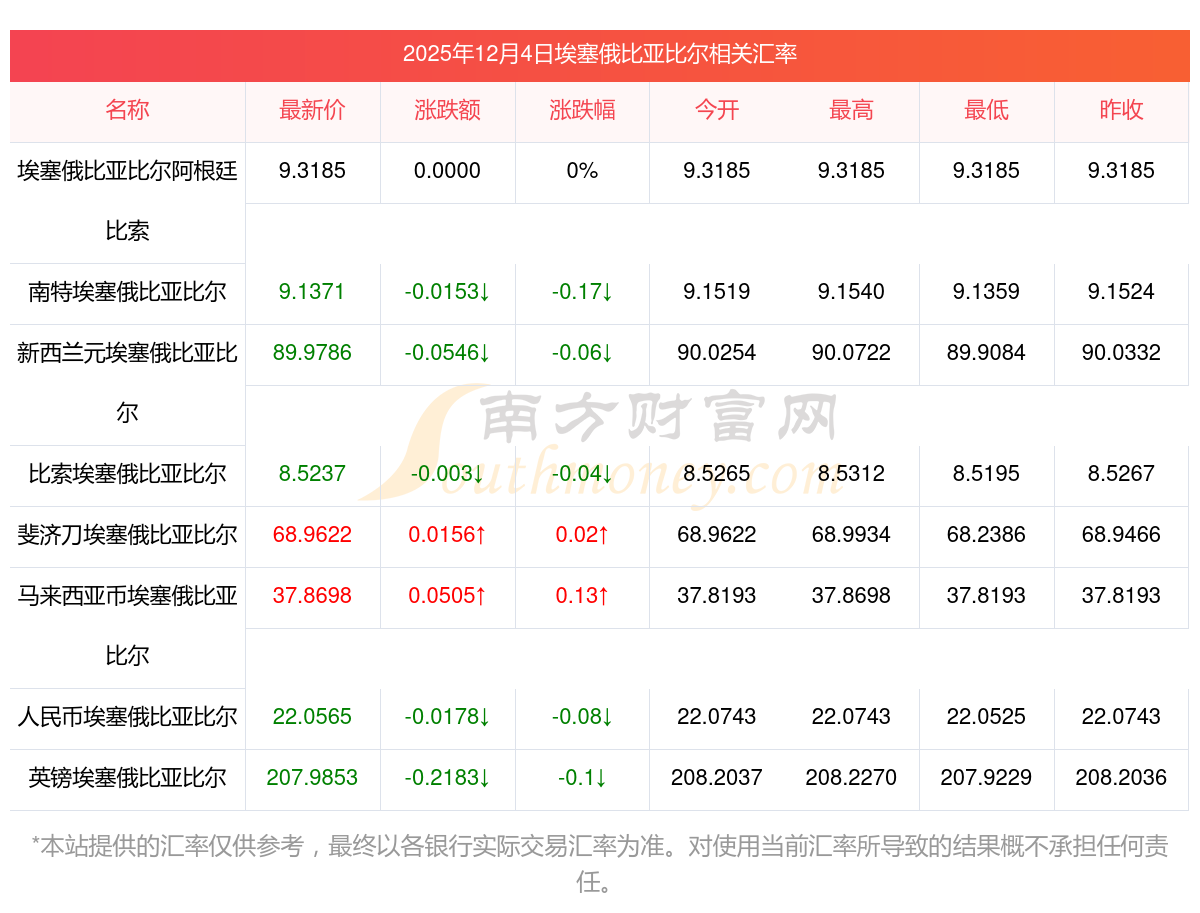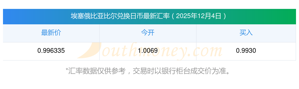 埃塞俄比亞比爾的匯率,12月4日埃塞俄比亞比爾與日幣匯率是多少?