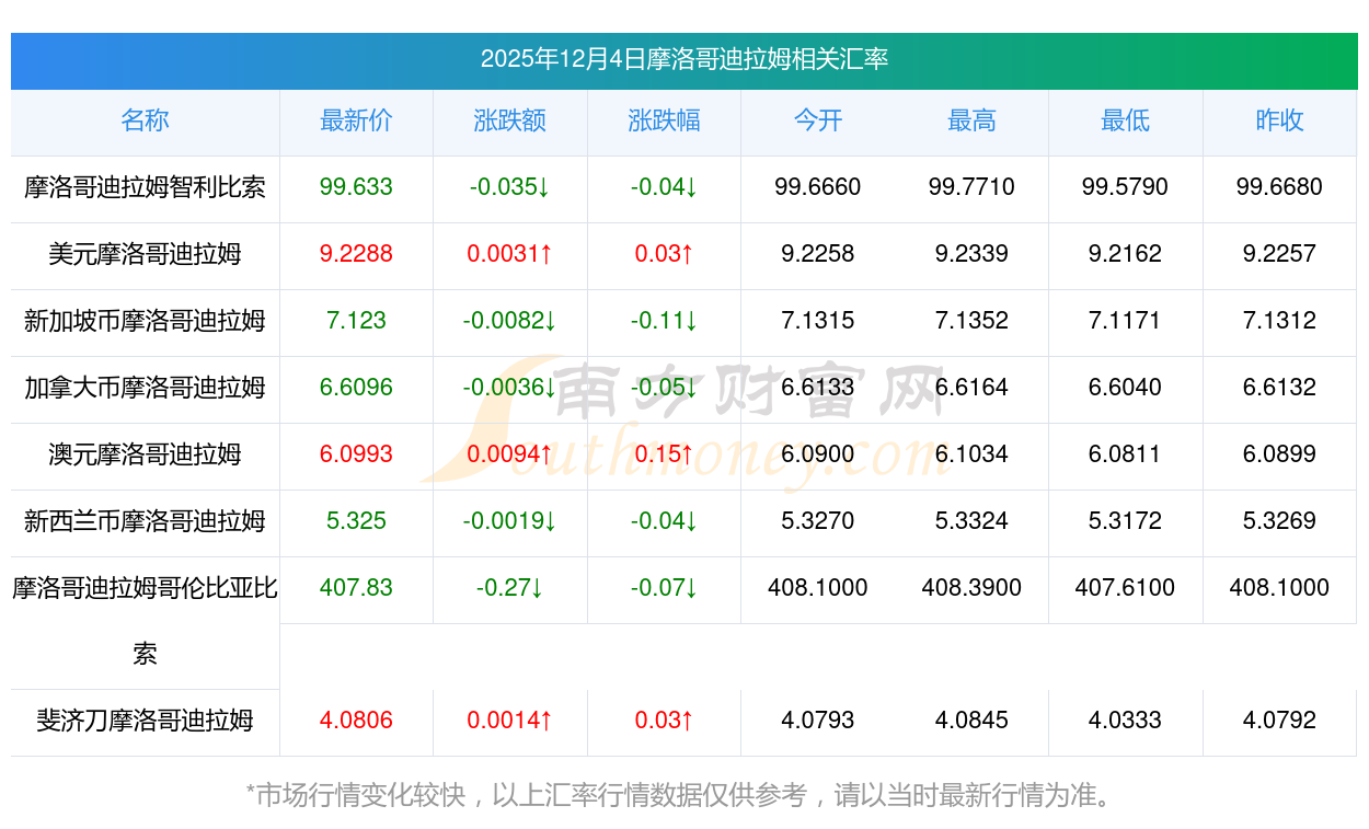 2025年12月4日摩洛哥迪拉姆相關(guān)匯率查詢