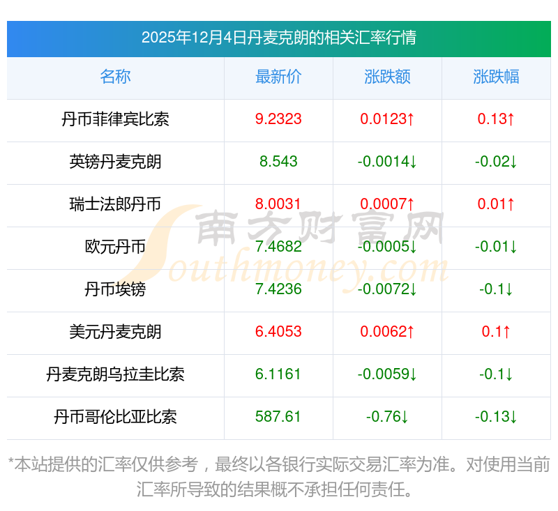 2025年12月4日丹麥克朗相關(guān)匯率查詢