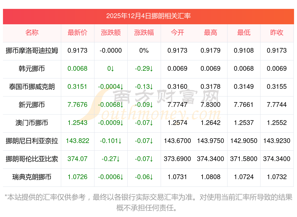 根據(jù)2025年12月4日匯率,挪朗兌換蘭幣匯率最新價(jià)1.695500,今開價(jià)1.6940,昨收價(jià)1.6940,最高價(jià)1.6965,最低價(jià)1.6823。
