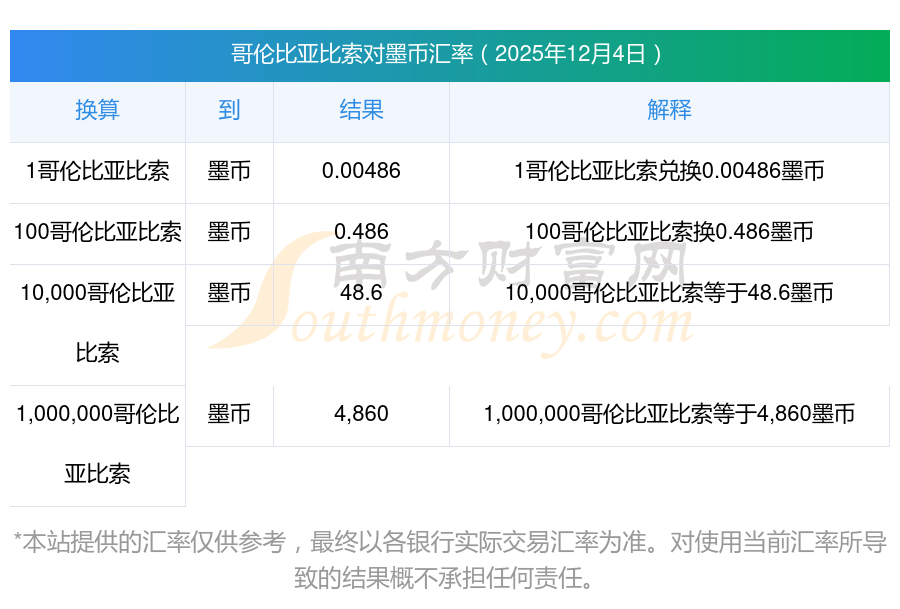 今天哥倫比亞比索對(duì)墨幣匯率每日更新嗎?2025年12月4日