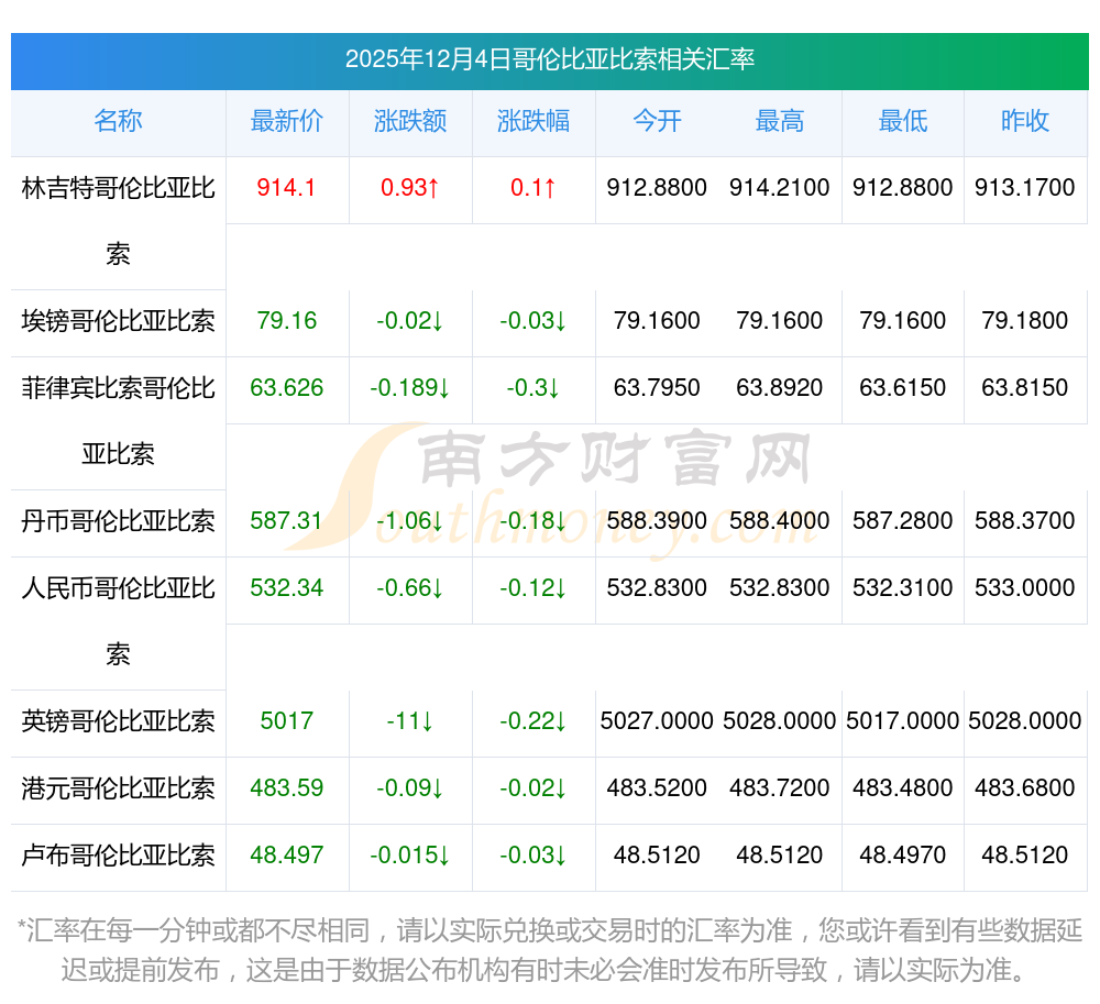 南方財(cái)富網(wǎng)為您提供哥倫比亞比索對(duì)墨幣匯率最新價(jià)格詳情。
