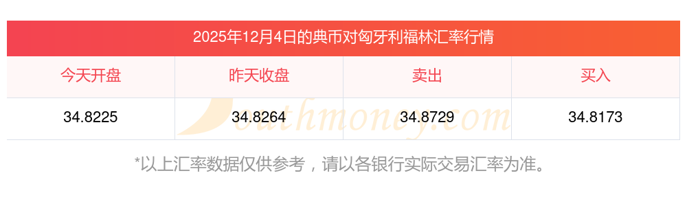 2025年12月4日典幣與匈牙利福林的兌換匯率計(jì)算如下: