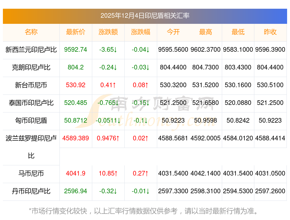 根據(jù)2025年12月4日匯率計算,IDR兌換FJD匯率最新價0.000136:今日開價0.0001,昨日收價0.0001,最高價0.0001,最低價0.0001。