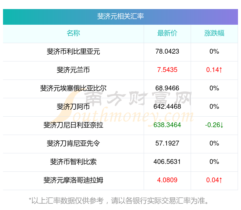 南方財富網(wǎng)為您提供斐濟(jì)元對巴西雷亞爾匯率最新價格詳情。