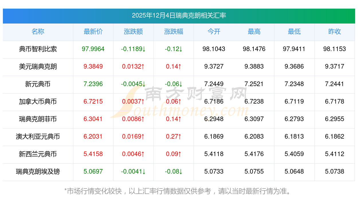 2025年12月4日瑞典克朗相關(guān)匯率查詢