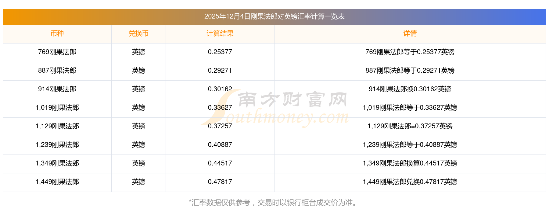 2025年12月4日剛果法郎對英鎊匯率?