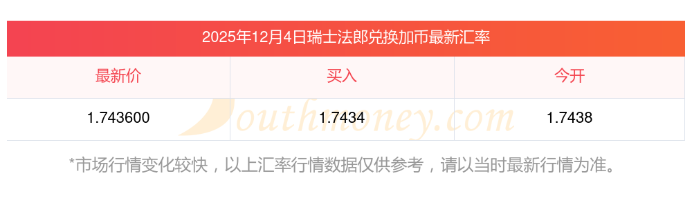 現(xiàn)在瑞士法郎對加元的匯率是多少?2025年12月4日