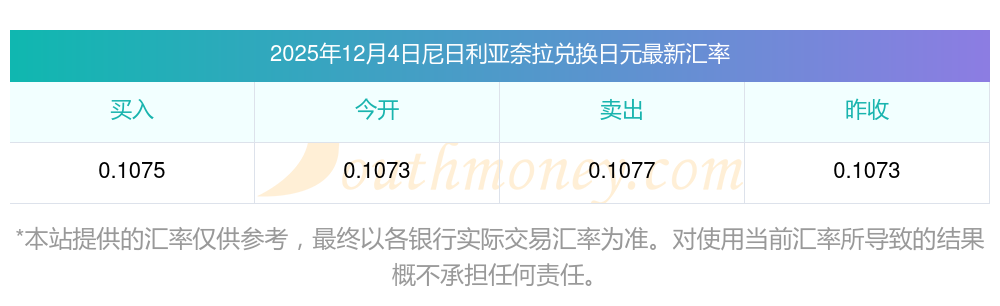 2025/12/04匯率:2尼日利亞奈拉等于多少日元?
