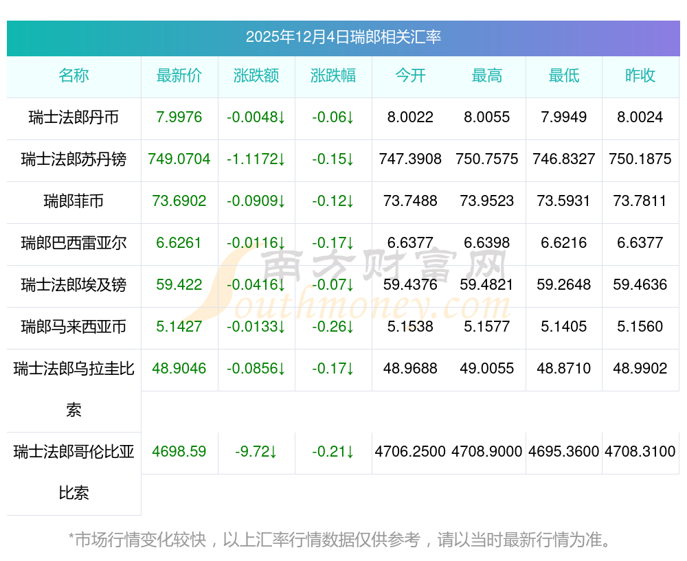2025年12月4日瑞郎相關(guān)匯率查詢(xún)