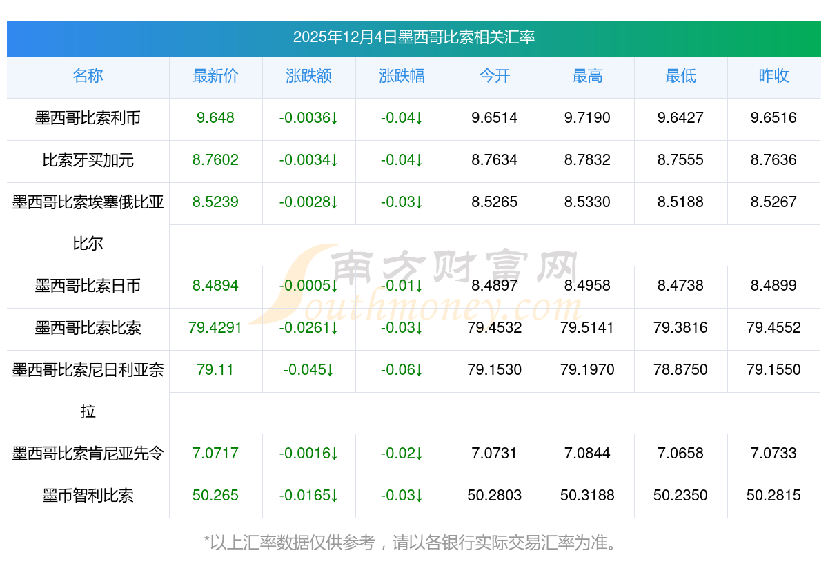 2025年12月4日墨西哥比索相關(guān)匯率查詢