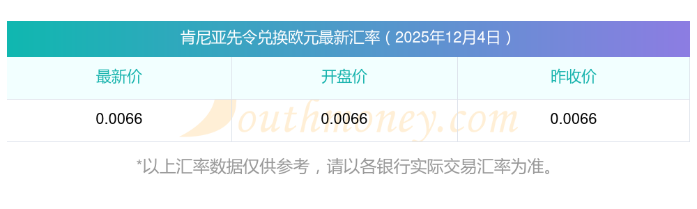 2025年12月4日肯尼亞先令兌換歐元匯率是:0.00663