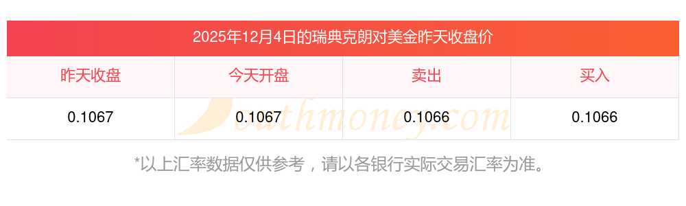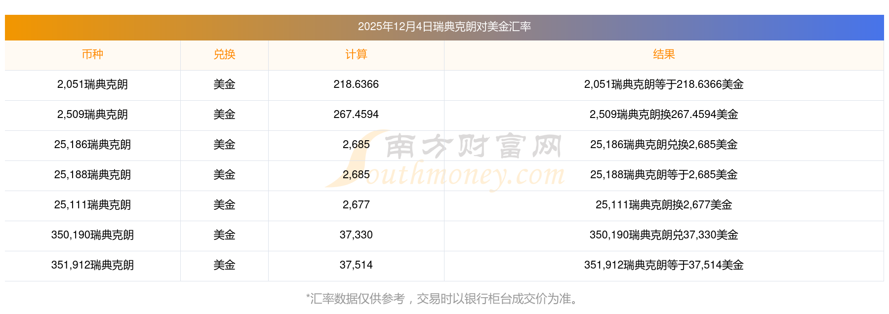 南方財(cái)富網(wǎng)為您提供瑞典克朗對(duì)美金匯率最新價(jià)格詳情。