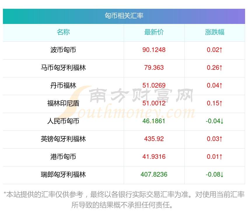 南方財(cái)富網(wǎng)為您提供匈幣對(duì)蘭特匯率最新價(jià)格詳情。