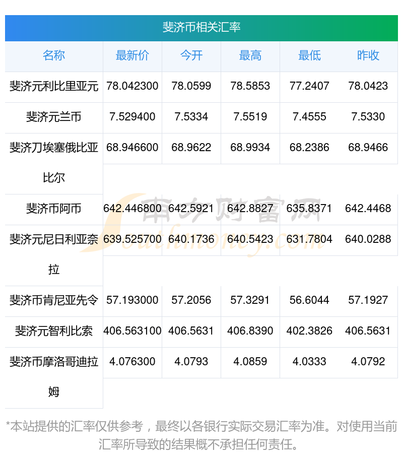 南方財(cái)富網(wǎng)為您提供斐濟(jì)幣對(duì)摩洛哥迪拉姆匯率最新價(jià)格詳情。