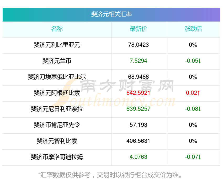 根據(jù)2025年12月4日匯率計(jì)算,F(xiàn)JD兌換ARS匯率最新價642.592100,今開價642.5921,昨收價642.4468,最高價642.8827,最低價635.8371。