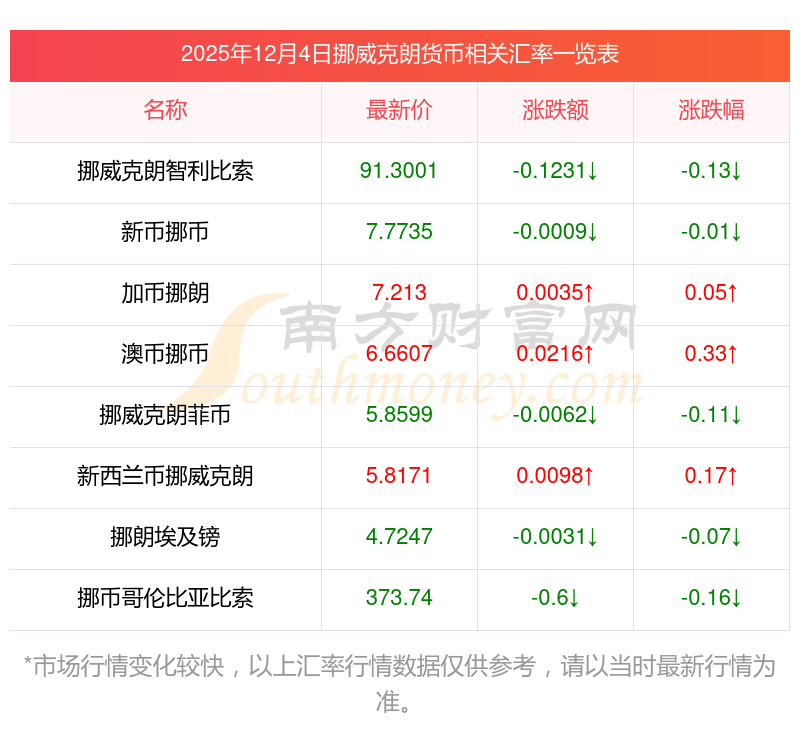 2025年12月4日挪威克朗相關(guān)匯率查詢