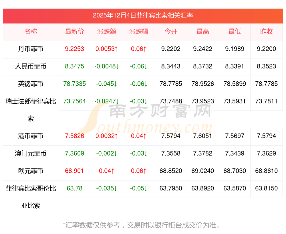 2025年12月4日菲律賓比索相關(guān)匯率查詢