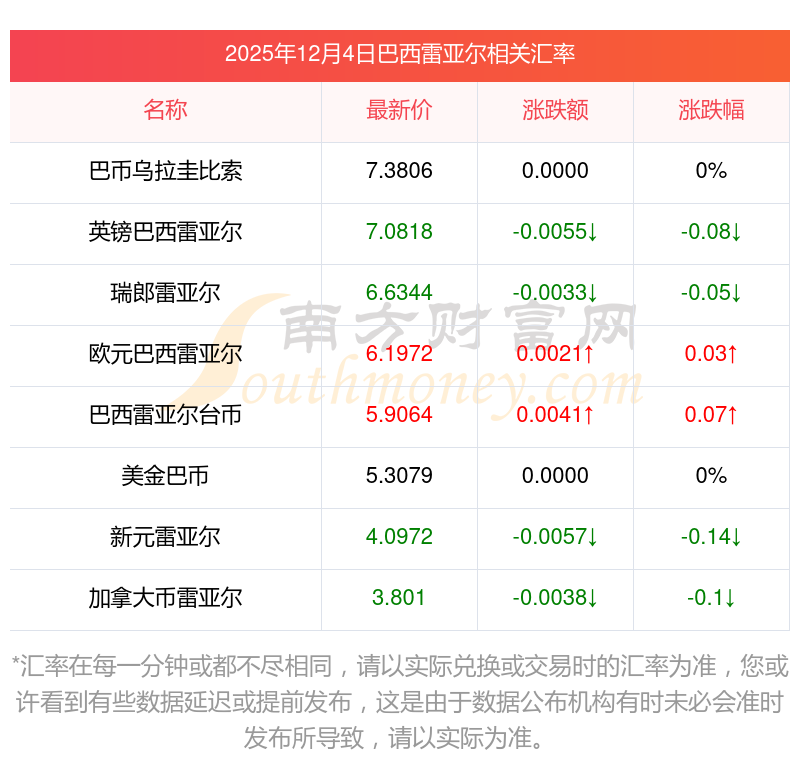 2025年12月4日巴西雷亞爾相關(guān)匯率查詢