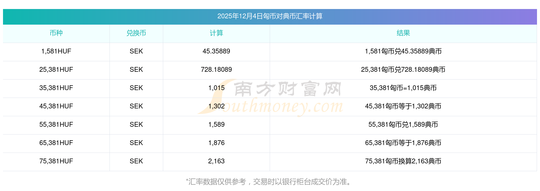 匯率實(shí)時(shí)更新!62匈幣兌換典幣匯率表(2025年12月4日)