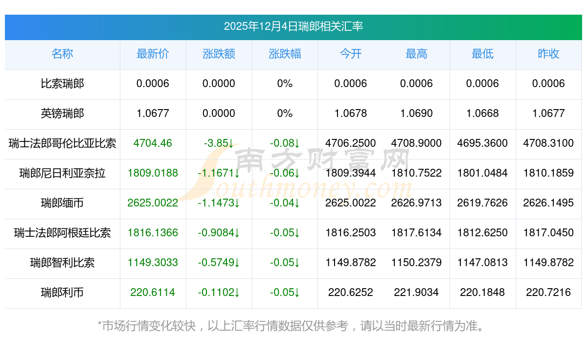 2025年12月4日瑞郎相關(guān)匯率查詢