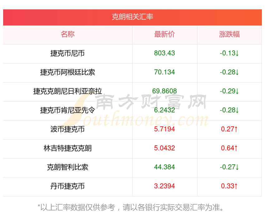 2025年12月4日克朗相關(guān)匯率查詢