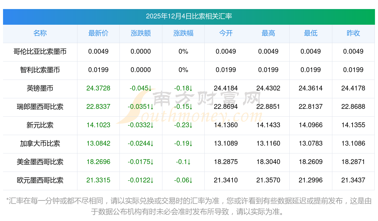 南方財富網(wǎng)為您提供比索對歐元匯率最新價格詳情。