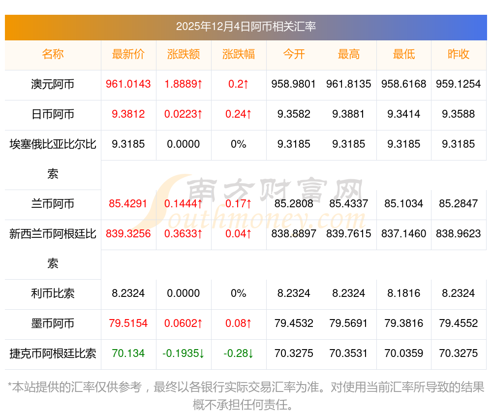 2025年12月4日阿幣相關(guān)匯率查詢(xún)