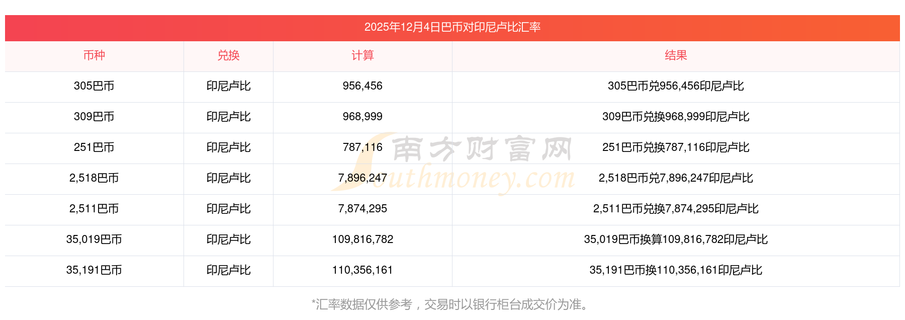 今天巴幣兌印尼盧比匯率查詢_世界各國貨幣在線轉(zhuǎn)換2025/12/4