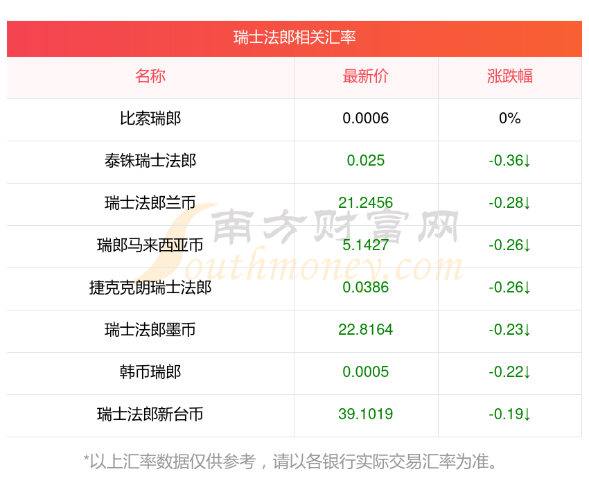 南方財(cái)富網(wǎng)為您提供瑞士法郎對(duì)新臺(tái)幣匯率最新價(jià)格詳情。