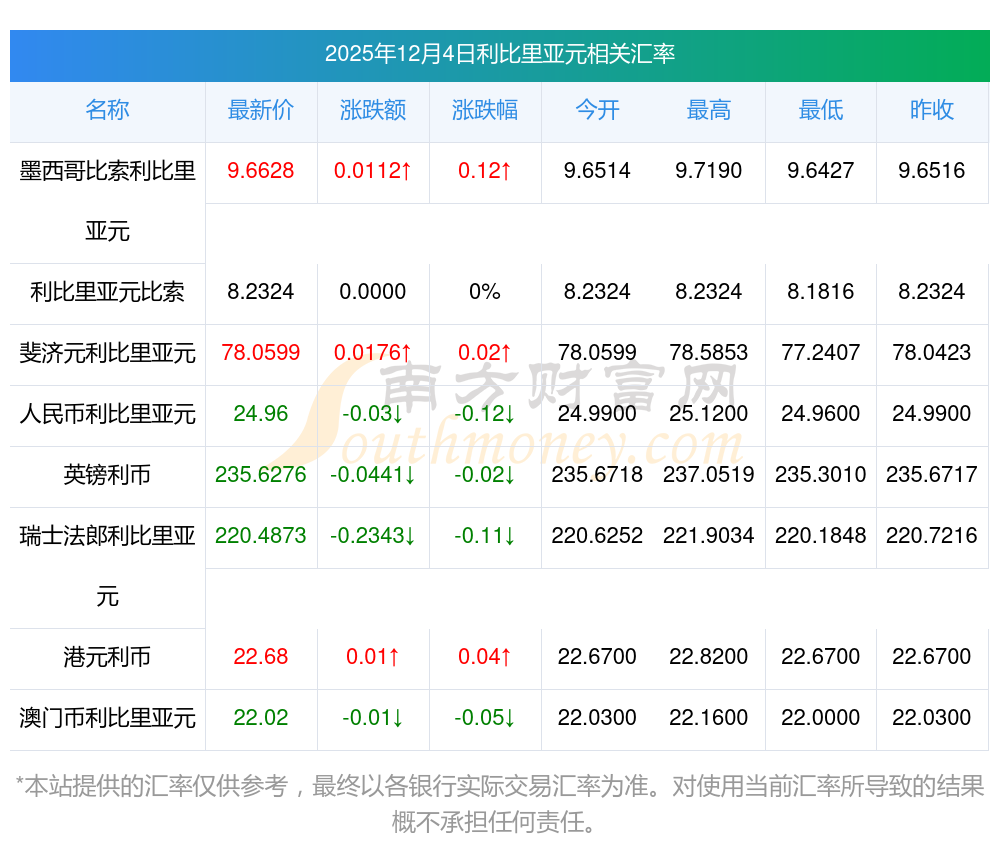 2025年12月4日利比里亞元相關(guān)匯率查詢