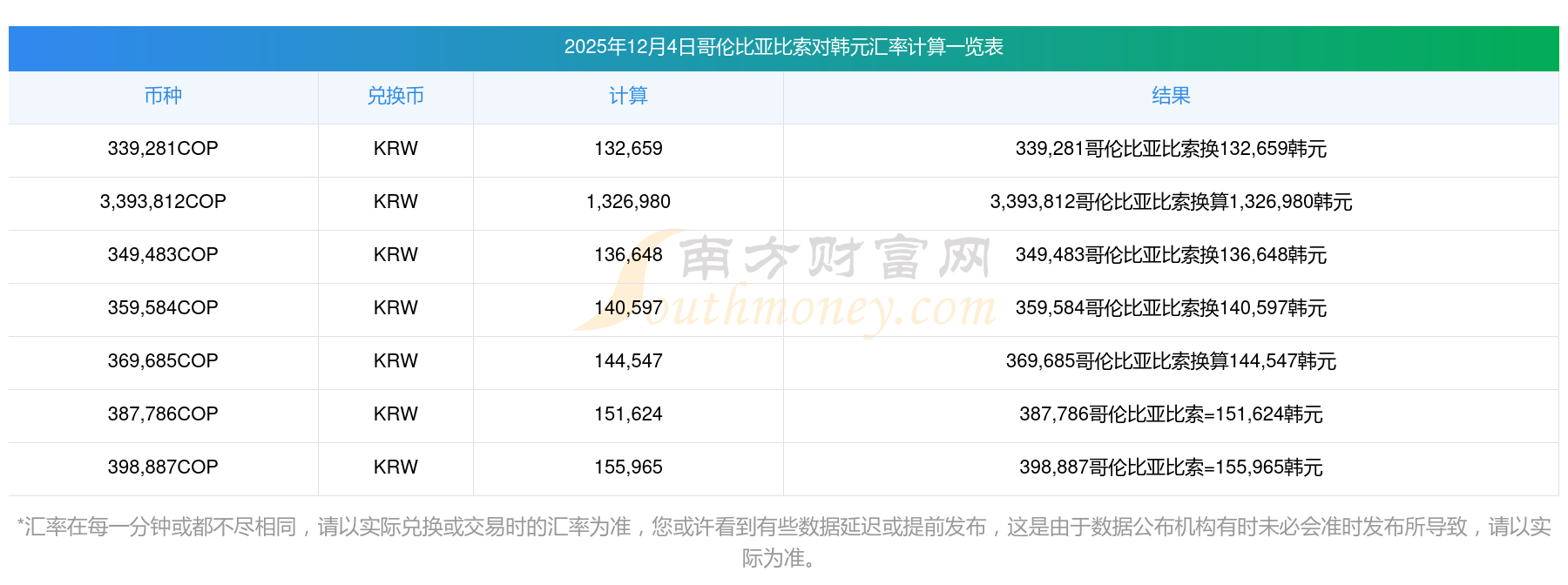 南方財(cái)富網(wǎng)為您提供哥倫比亞比索對(duì)韓元匯率最新價(jià)格詳情。